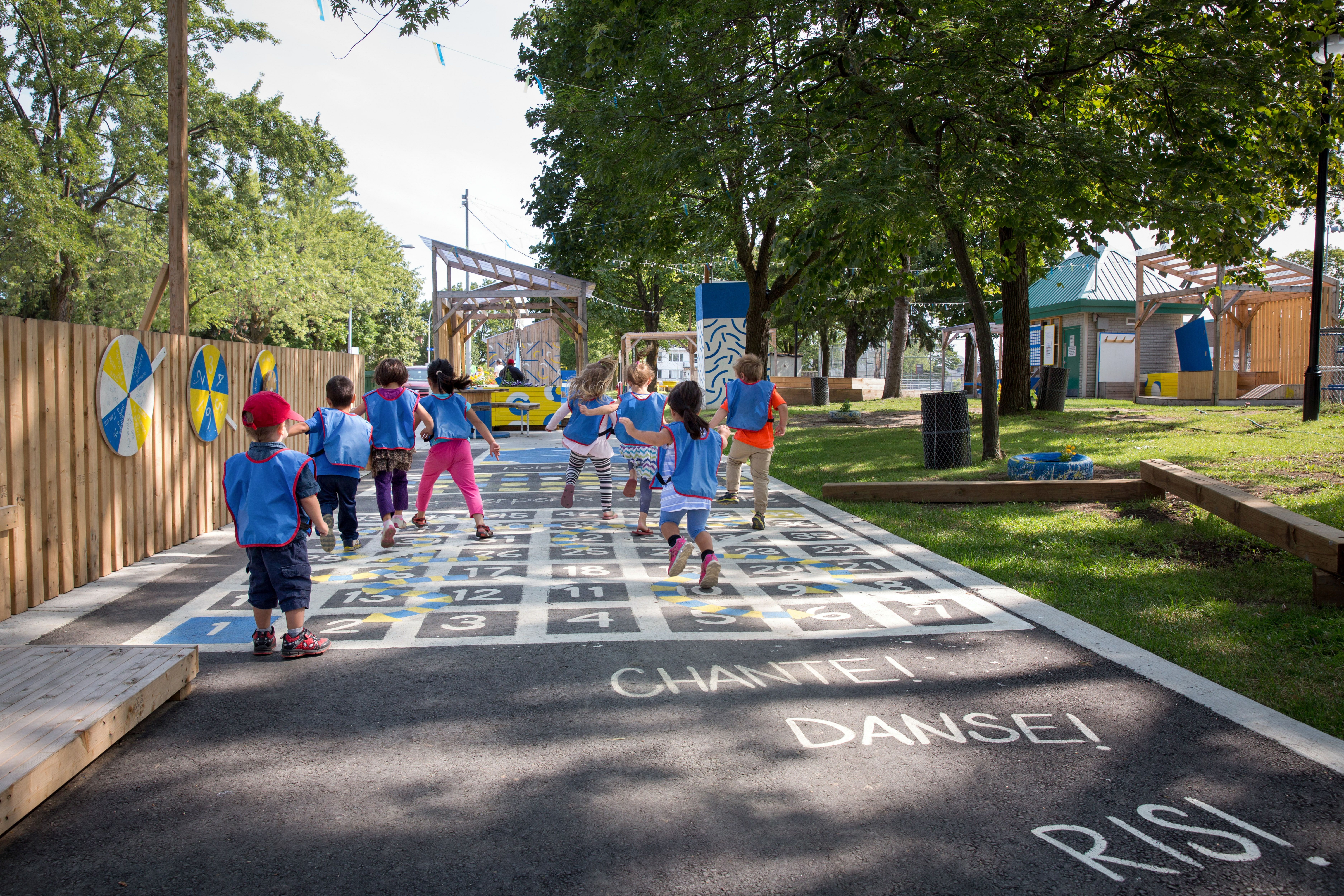 Au nombre des interventions réalisées et prévues : plantation de végétaux et arbres (secteur avec un grand îlot de chaleur), création d’espaces publics ludiques (rue piétonne depuis 2016, joujouthèque extérieure depuis 2017), implantation d’un marché public, sensibilisation à l’art public (ateliers de médiation culturelle dans les cinq écoles, murales extérieures, habillement des clôtures, « street art », sculptures sur arbres, espace culturel, mobiliers urbains publics, etc.), amélioration des services existants (réaménagement parc, création d’un pôle aquatique, etc.), élimination de clôtures, agriculture urbaine, sécurisation des déplacements, limitation de la circulation automobile et amélioration des pratiques en transport actif. Le tout est possible étant donné l’entente de collaboration que l’arrondissement a signée avec La Société de verdissement du Montréal métropolitain (SOVERDI), Vélo-Québec et les deux commissions scolaires (CSPI et EMSB). Actuellement, plus de dix millions ont été investit (tous les partenaires confondus) au cœur de ce grand projet urbain qui a décroché plusieurs récompenses à travers les années, dont le prix ESTIM 2017 comme projet d’innovation ou de développement (secteur public / parapublic) par la Chambre de commerce de l’Est de Montréal, le prix NOVAE 2018 catégorie Architecture et urbanisme, le Grand prix NOVAE 2018 et la nomination dans la catégorie Corps publics au Gala de reconnaissance en environnement et développement durable 2018.